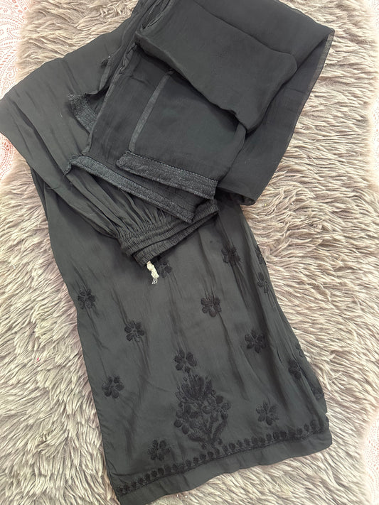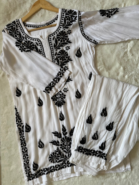 BLACK AND WHITE 3 PIECE SHORT KURTA MODAL SET